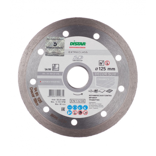 Диск алмазный сплошной (125х1.2х22.2 мм) по керамике Decor Slim для УШМ DiStar 11115427010