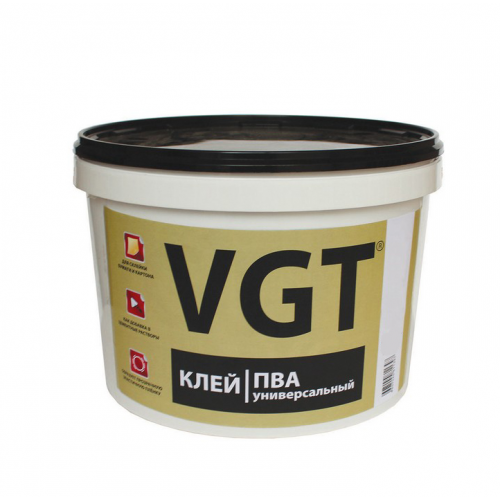 Клей ПВА универсальный VGT для бытовых работ по склейке древесины, бумаги, картона, возможно применение в качестве добавки в цементные растворы.