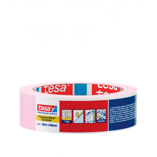 Лента малярная Tesa для деликатных поверхностей розовая 30 мм х 50 м