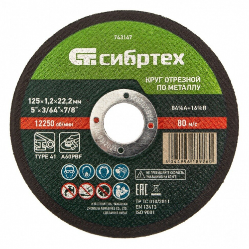 Круг отрезной по металлу 125*1,2*22мм Сибртех