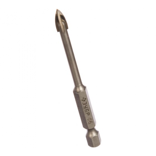 Сверло по стеклу и кафелю, Профессионал (29845-06) ЗУБР 6 мм, 4х кромка, HEX 1/4
