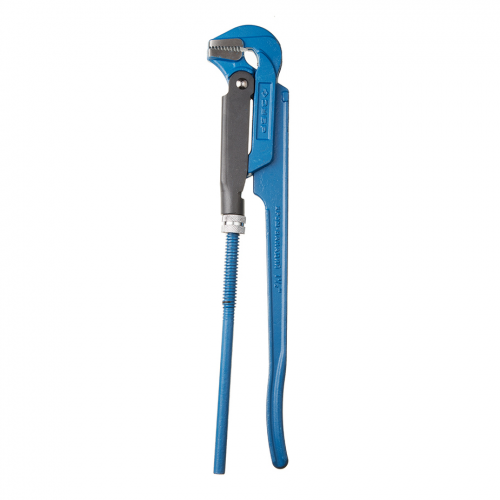 Ключ трубный предназначен для работ с трубами и крепежом различной формы и размера. Имеет длительный срок службы. Цельнокованая конструкция и специальная форма губок позволяют применить инструмент при больших нагрузках. Выполнен из высококачественной хромованадиевой стали. Для увеличения износостойкости зубцы подвергнуты индукционной закалке токами высокой частоты до твердости 53 – 59 HRC. Угол наклона зубьев обеспечивает максимально возможное усилие захвата. Максимальный захват – 38 мм. Предохранительный стопор для регулировочной гайки препятствует ее полному откручиванию.