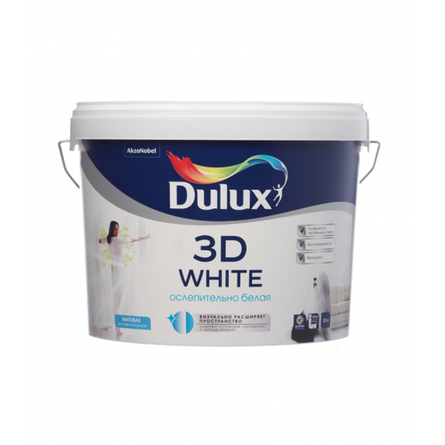 Краска водно-дисперсионная интерьерная Dulux 3D White белая основа BW 9л