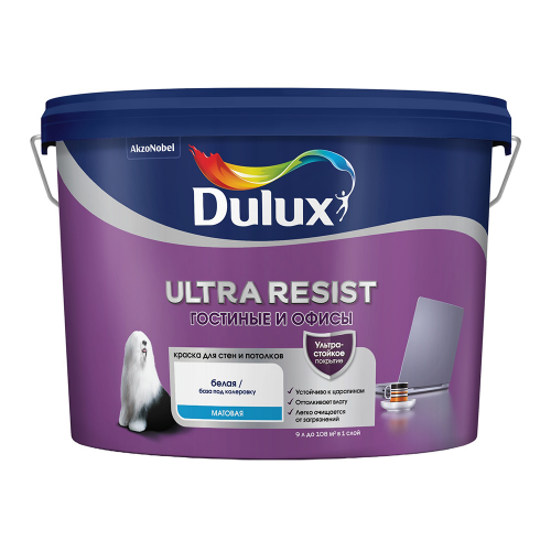 Краска моющаяся Dulux/Luxium Ultra Resist гостиные и офисы база BW белая 9 л