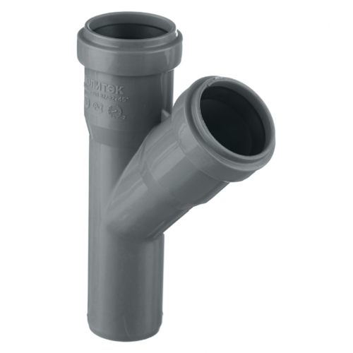 Предназначен для разветвления потока воды на два направления в одной плоскости. Используется с трубами канализационными внутренними диаметром 32 мм. Обеспечивает отвод на 45°.