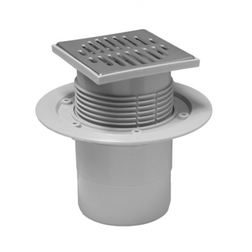 Трап вертикальный McAlpine (MRFG3V-110) с сухим затвором 115х115 мм d110 мм решетка из нержавеющей стали