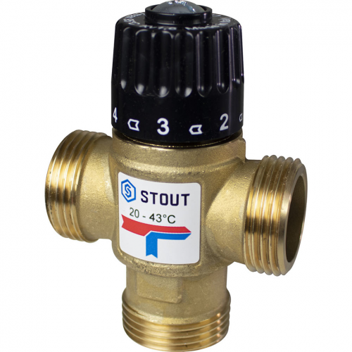 Клапан (вентиль) термостатический Stout (SVM-0120-164325) подмешивающий 1 НР(ш) для систем отопления и ГВС 20-43 °С KVs 1,6