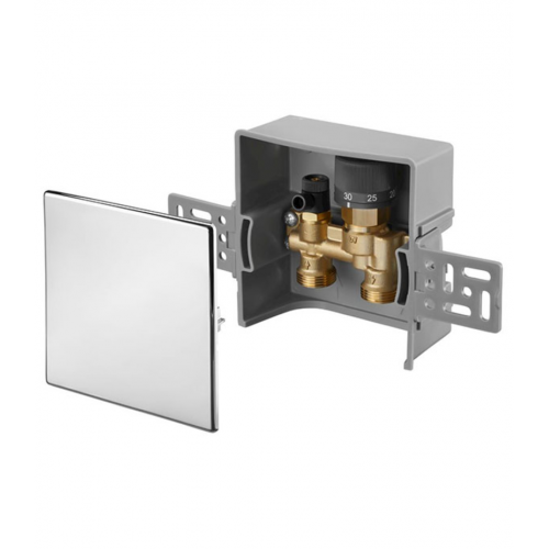 Предназначен для регулировки температуры отдельного помещения. Настройка происходит за счет ограничения обратного потока при напольном отоплении. Состоит из монтажной коробки со встроенным ограничителем температуры обратного потока, воздухоотводчика, крышки. Резьба вентиля G 3/4 евроконус для присоединительных наборов Oventrop со стяжными кольцами.