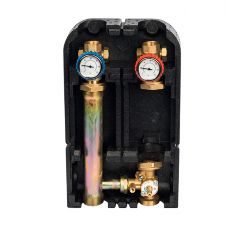 Предназначена для обвязки котлов и обеспечивая принудительную циркуляцию теплоносителя. Насосная группа с термостатическим смесительным клапаном, за счет которого осуществляется поддержанием постоянной температуры (точки фиксации) состоит из двух запорных шаровых кранов и одного обратного клапана, двух термометров подающей и обратной линии, смесительного клапана под привод, байпаса и блочной теплоизоляции.