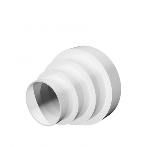 Предназначен для соединения круглых воздуховодов разных диаметров. Корпус подрезается для получения редуктора с необходимыми диаметрами. Соединение осуществляется напрямую с воздуховодами. Материал – пластик.