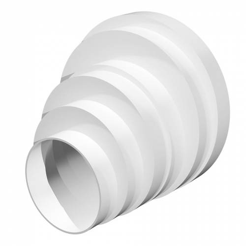Для соединения каналов разных диаметров. Корпус подрезается для получения редуктора с необходимыми диаметрами. Соединение осуществляется напрямую с воздуховодами.