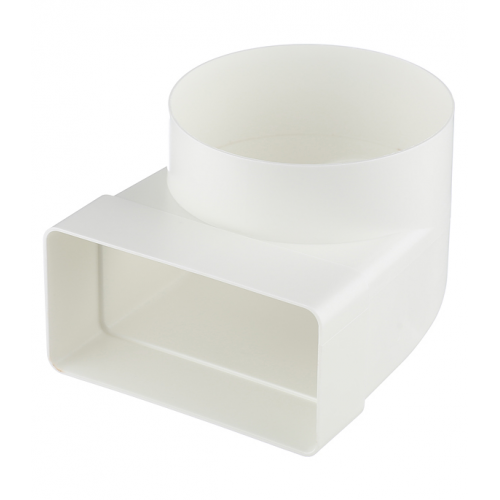 Предназначен для соединения под углом 90 градусов круглых вентиляционных каналов диаметром 100 мм с плоскими. Для присоединения к трубопроводам круглого сечения понадобятся переходники-соединители (Код: 107811/107816).