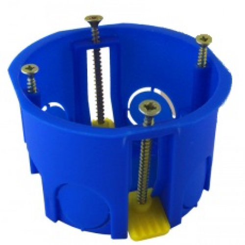 Подрозетник ДЛЯ ГИПСОКАРТОНА СИНИЙ d68х45 мм 4 ввода синий IP20 с пластмассовыми лапками с винтами безгалогенный