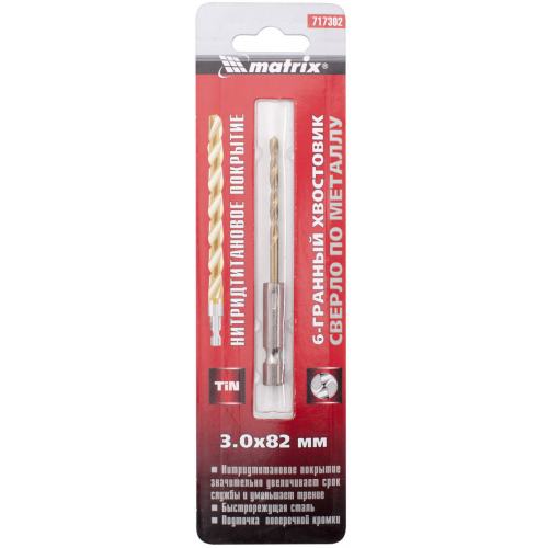 Сверло по металлу, 3 мм, HSS, нитридтитановое покрытие, шестигранный хвостовик Matrix Артикул: 717302