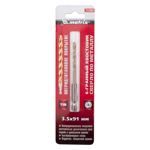 Сверло по металлу, 3.5 мм, HSS, нитридтитановое покрытие, шестигранный хвостовик Matrix Артикул: 717352