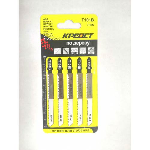 Пилки для лобзика — T101B 100 х 75 мм, чистый рез, ламинат, дерево КРЕОСТ (цена за уп. 5шт)