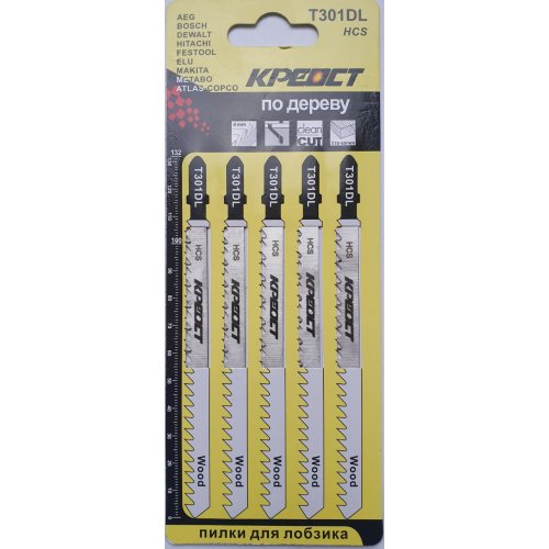 Пилки для лобзика —T301DL 132/100мм по дереву КРЕОСТ (цена за уп. 5шт)