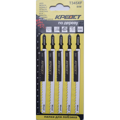 Пилки для лобзика —T345XF 132/100мм по дереву КРЕОСТ (цена за уп. 5шт)