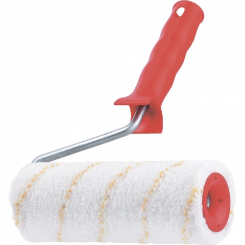 - Валик максимально отдает краску на поверхность за счет конструкции, обеспечивающей свободное вращение на бюгеле.