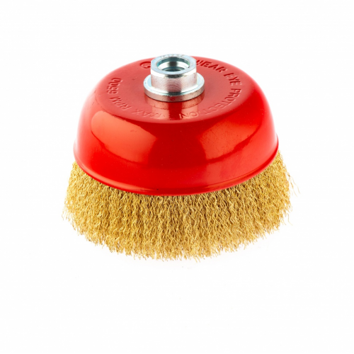 Щетка для УШМ, 125 мм, М14, "чашка", латунированная витая проволока Matrix
