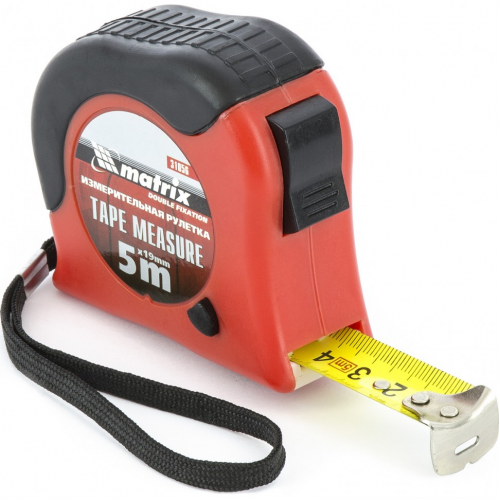 Рулетка Double fixation, 5 м х 19 мм, обрезиненный корпус, двойная плавная фиксация Matrix