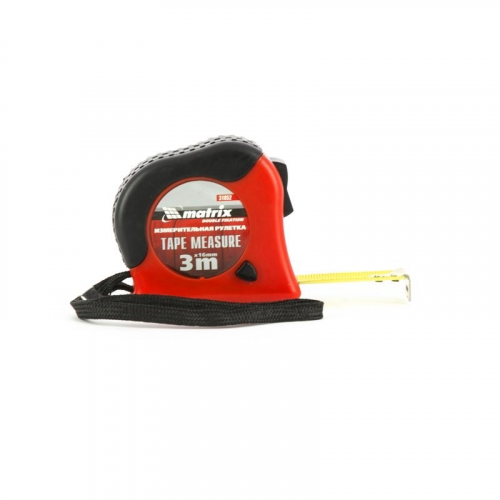 Рулетка Double fixation, 3 м х 16 мм, обрезиненный корпус, двойная плавная фиксация Matrix
