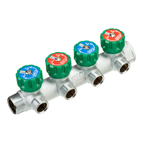 Коллектор FAR (FK 3824 3412) 3/4 ВР(г) х 4 выхода 1/2 НР(ш) х 3/4 НР(ш) регулируeмый
