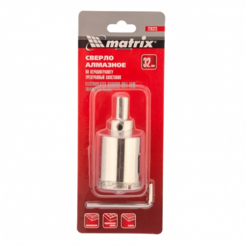 Сверло алмазное по керамограниту (коронка), 32 х 67 мм, трехгранный хвостовик Matrix