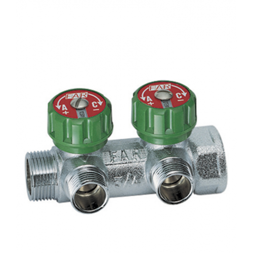 Коллектор FAR (FK 3821 134) 1 ВР(г) х 2 выхода 3/4 НР(ш) ЕК х 1 НР(ш) регулируeмый