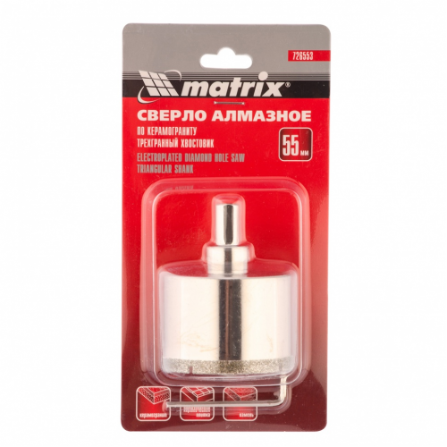 Сверло алмазное по керамограниту, 55 х 67 мм, трехгранный хвостовик Matrix