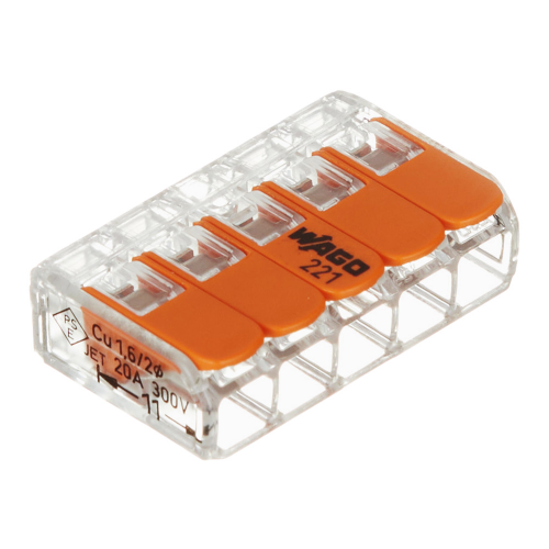 Клемма на 5 проводов Wago 221-415 0,2-4 кв.мм с рычажками без пасты. (1шт)