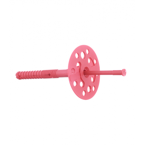 Предназначен для крепления легких теплоизоляционных изделий к внутренним и наружным поверхностям зданий различного назначения, в том числе в системах вентилируемых фасадов, штукатурных фасадов и колодезной кладке, в такие основания, как тяжелый и легкий бетон, полнотелый керамический и силикатный кирпич, керамзитобетонный блок. За счет широкой шляпки дюбель часто называют "парашют" или тарельчатый дюбель. Конструкция широкой шляпки дюбеля плотно прижимает теплоизоляцию, отверстия позволяют утопить дюбель в клее без потери эластичности шляпки. В комплекте с дюбелем поставляется пластмассовый гвоздь, который для большей прочности армирован стекловолокном.