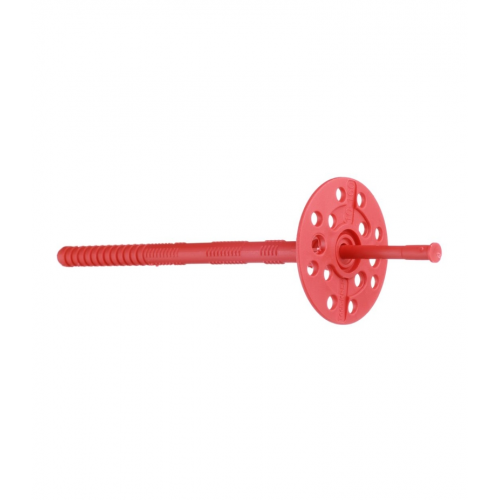 Предназначен для крепления легких теплоизоляционных изделий к внутренним и наружным поверхностям зданий различного назначения, в том числе в системах вентилируемых фасадов, штукатурных фасадов и колодезной кладке, в такие основания, как тяжелый и легкий бетон, полнотелый керамический и силикатный кирпич, керамзитобетонный блок. За счет широкой шляпки дюбель часто называют "парашют" или тарельчатый дюбель. Конструкция широкой шляпки дюбеля плотно прижимает теплоизоляцию, отверстия позволяют утопить дюбель в клее без потери эластичности шляпки. В комплекте с дюбелем поставляется пластмассовый гвоздь, который для большей прочности армирован стекловолокном.