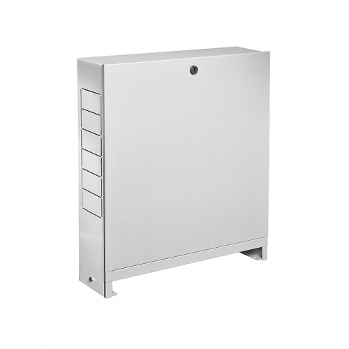 Предназначен для монтажа в нем коллекторов систем отопления и водоснабжения. В боковых стенках корпуса шкафа выполнена перфорация, сегменты которой удаляются в любом удобном месте для подсоединения трубопроводов. Внутри шкафа установлены универсальные профильные крепления, позволяющие располагать оборудование по всей высоте и ширине шкафа. Шкаф имеет регулировки по высоте до 40 мм за счет выдвижных ножек. Крепление шкафа к полу осуществляется с помощью отверстий в выдвижных ножках, а к стене – с помощью отверстий в задней стенке. Для защиты от несанкционированного доступа шкаф оснащен внутренним замком «под монетку».