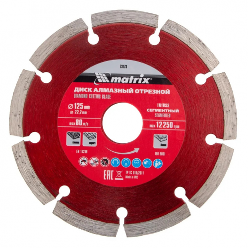Диск алмазный, отрезной сегментный, 125 х 22.2 мм, сухая резка Matrix Professional 73173