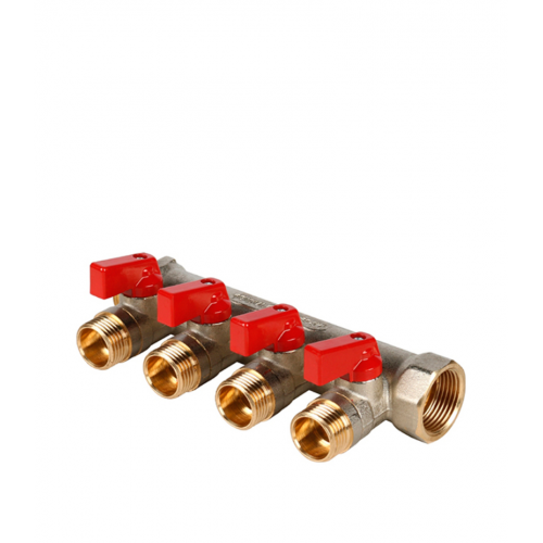Коллектор Stout (SMB 6200 341204) 3/4 ВР(г) х 4 выхода 1/2 НР(ш) х 3/4 НР(ш) с шаровыми кранами