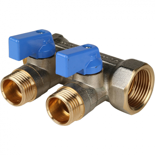 Коллектор Stout (SMB 6211 341202) 3/4 ВР(г) х 2 выхода 1/2 НР(ш) х 3/4 НР(ш) с шаровыми кранами