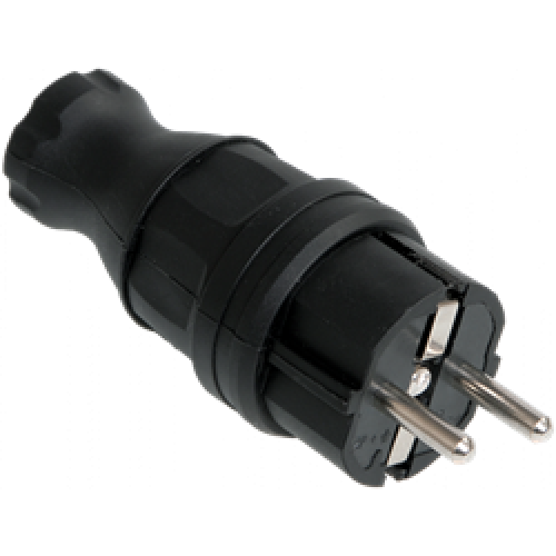 Вилка Bilyon прямая, с заземлением, каучуковая черная