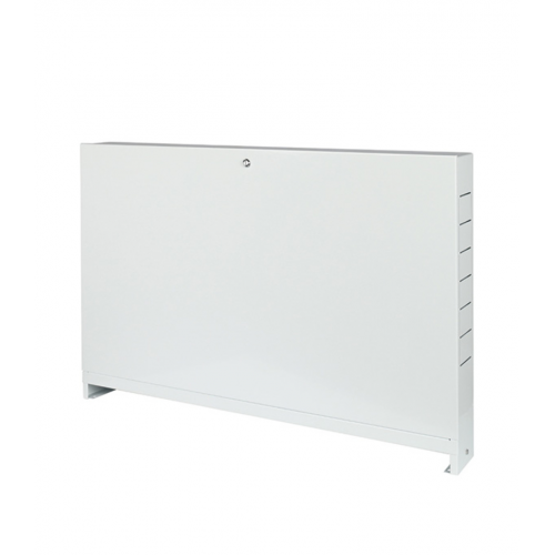 Предназначен для монтажа в нем коллекторов систем отопления и водоснабжения. В боковых стенках корпуса шкафа выполнена перфорация, сегменты которой удаляются в любом удобном месте для подсоединения трубопроводов. Внутри шкафа установлены универсальные профильные крепления, позволяющие располагать оборудование по всей высоте и ширине шкафа. Шкаф имеет регулировки по высоте до 40 мм за счет выдвижных ножек. Крепление шкафа к полу осуществляется с помощью отверстий в выдвижных ножках, а к стене – с помощью отверстий в задней стенке. Для защиты от несанкционированного доступа шкаф оснащен внутренним замком «под монетку».