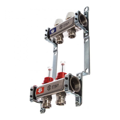 Коллекторная группа Stout из нержавеющей стали с расходомерами 2 вых. STOUT SMS 0917 000002