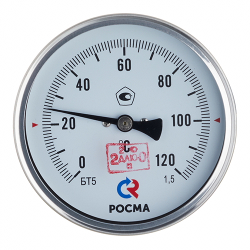 Термометр РОСМА (2545) 1/2 НР(ш) аксиальный d100 мм 120°С шток 64х6 мм