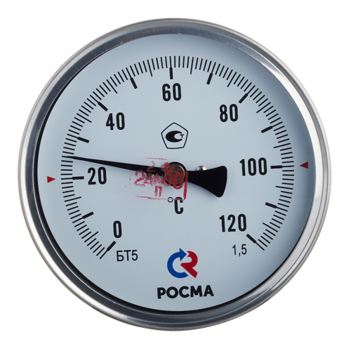 Термометр РОСМА (2539) 1/2 НР(ш) аксиальный d100 мм 120°С шток 100х6 мм