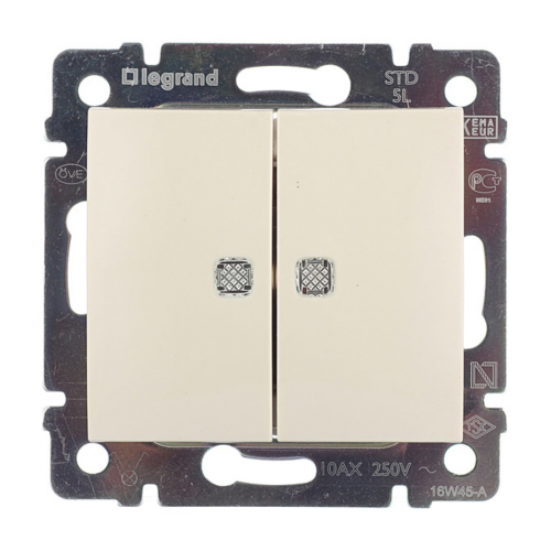 Выключатель Legrand Valena 695630 двухклавишный скрытая установка слоновая кость с подсветкой