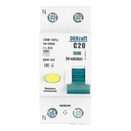 Автомат дифференциальный Dekraft 20А 30 мА 1P+N тип АС 6 кА 16205DEK