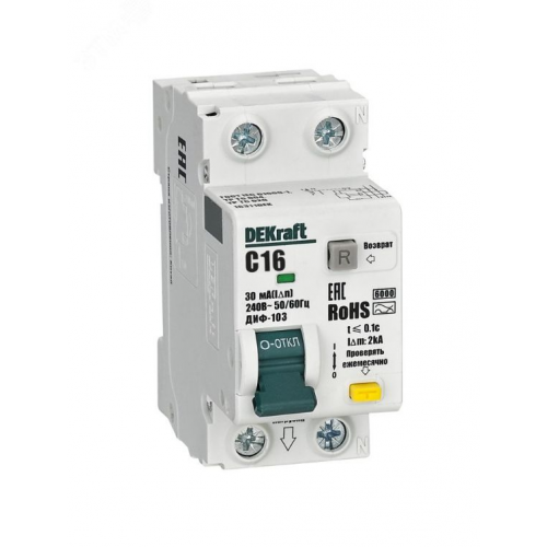 Автомат дифференциальный Dekraft 16А 30 мА 1P+N тип АС 6 кА 16311DEK