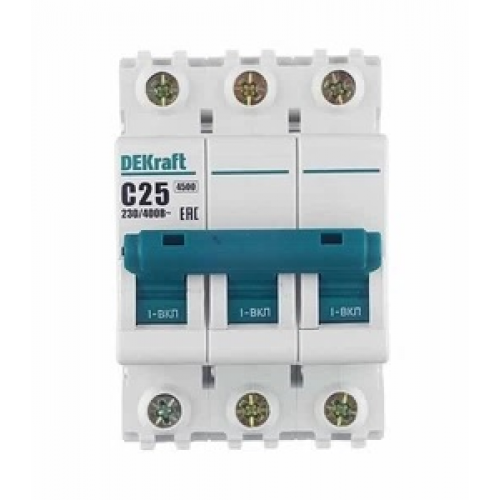 Автоматический выключатель Dekraft BA-101 (11080DEK) 3P 25А тип С 4,5 кА 230-400 В на DIN-рейку