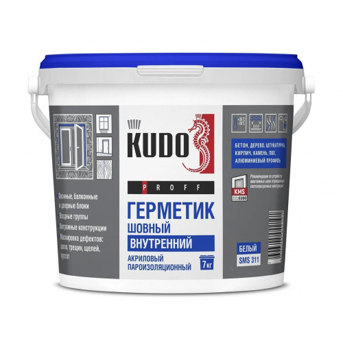 Акриловый пароизоляционный шовный герметик KUDO внутренний PROFF SMS-311 белый, 7 кг 11606215 предназначен для устройства внутреннего слоя монтажного шва в местах примыкания оконных блоков (включая балконные), дверных блоков и входных групп, витражных конструкций к проемам стен отапливаемых зданий гражданского и промышленного строительства.