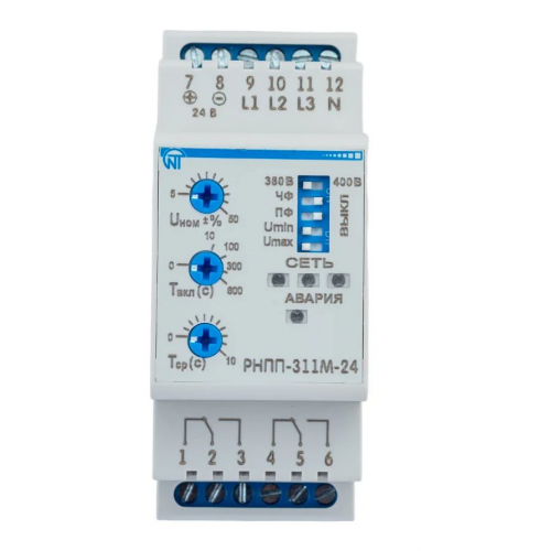 Реле напряжения РНПП-311М предназначено для защиты трехфазных потребителей от основных видов аварии в электрической сети, таких как - выход действующего значения напряжения за пределы допустимых порогов, нарушения последовательности и слипание фаз, нарушения полнофазности и симметричности сетевого напряжения.