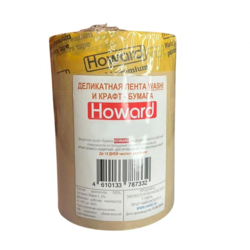 Защитная крафт-бумага Howard с Washi малярной лентой - незаменимый помощник при проведении малярных и ремонтных работ. Рулон длиной 25 метров обеспечивает надежную защиту поверхностей от краски, влаги и пыли.