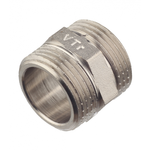 Предназначен для соединения элементов трубопровода равного диаметра. Резьба – наружная/наружная, цилиндрическая трубная по ГОСТу 6357 (ISO 228, EN 10226). Предусмотрен участок корпуса шестигранной формы, под гаечный ключ.
